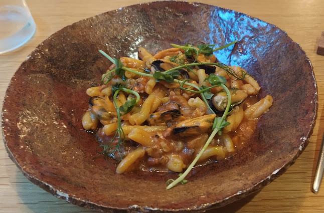 Ahora, hablemos de las pastas. Son, sin duda, el corazón del menú. Aunque he escuchado que las porciones son un poco pequeñas, la calidad de los ingredientes compensa esta falta. El uso de productos frescos y locales es una declaracion de intenciones que se refleja en cada bocado. La atención no se queda atrás; el personal es amable y atento, siempre dispuesto a recomendarte el mejor vino para acompañar tu elección.