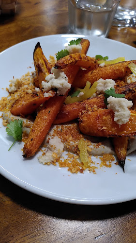 Los platos son creativos y, aunque algunos mencionan que las porciones pueden ser un poco escasas, el sabor es indiscutiblemente delicioso. Desde zanahorias asadas hasta una exquisita berenjena con chimichurri, cada bocado es una fiesta para los sentidos. Ah, y no olvides probar el helado de pistacho; es algo que no te querrás perder.